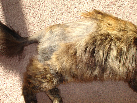 Sólo a veces me duele un poquito mi espaldita, pero estoy muy bien. Juego, corro, salto, me defiendo del gatorrista (tengo un escondite secreto, ¡muajajaja!), como rica comida, me hacen cariño… y he retomado mis costumbres de maullar desesperada si no veo a humanos, ¡muajajaja!… ¡Y sigue creciendo el pelo!
