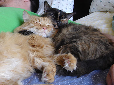 Que delicia dormir siesta bien calentitos … yo tengo el hombro de mi humana ;D