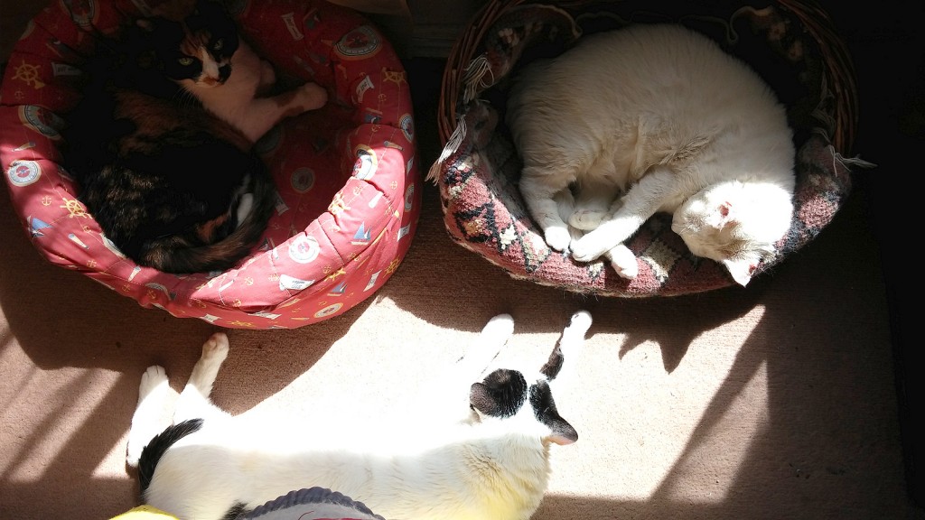 Y aquí estoy… ya dejo que tomen sol conmigo en este rincón delicioso que encontré… y me he dignado ir a comer al plato donde comen todos. También he usado la arena común.