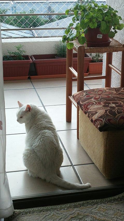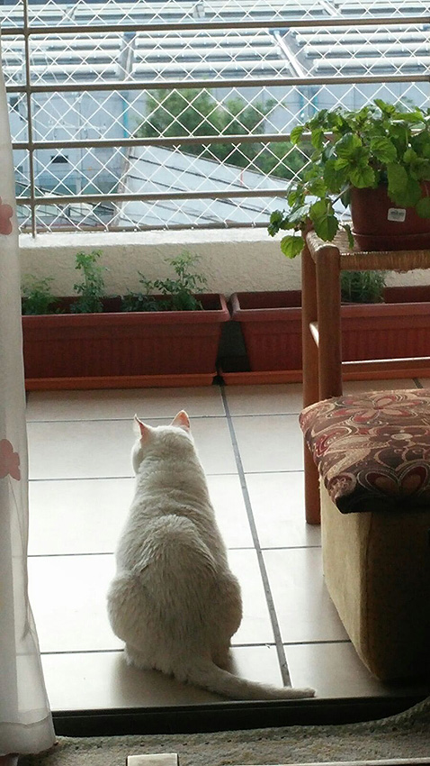 Puedo mirar la vida desde las alturas, los atardeceres de colores naranjos y rosados, como acostumbraba en el lugar en que me conoció humana. Ahora que nos dicen que el balcón es totalmente seguro para nosotros, nos dejan salir libremente… cuando están los humanos.