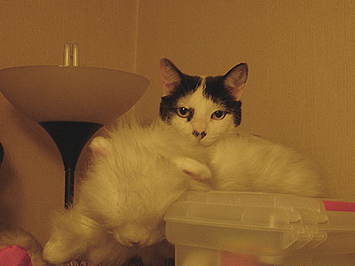 Jeje yo también tengo un peluche de un gato, pero la verdad es que los felinos no le prestan mucha atención, a lo sumo se duermen encima jeje