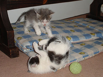 que graciososs son…..por lo que se ve en las 2 fotos son muy jugetones jejejeje yo tengo una gatyta y tanvien es jugetona.pues nada solo eso k som monisimooos