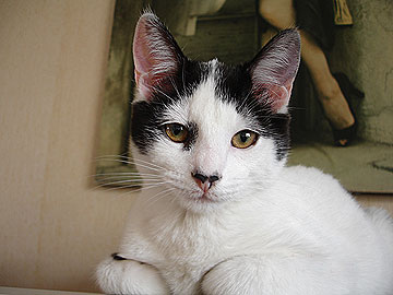 Nos encantan los gatos con colores de vaquita. Si pudiéramos uniríamos uno así a nuestra mancha. Estás chulazo!