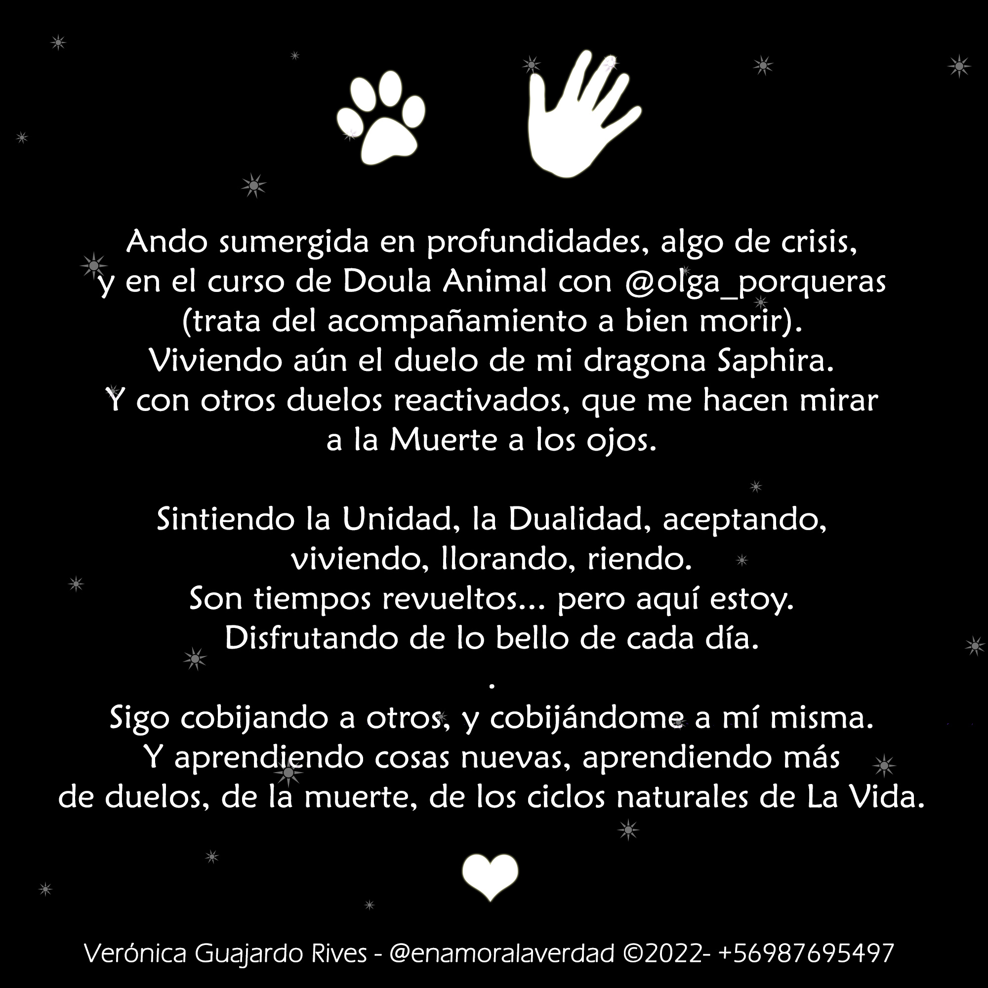 Ando sumergida en profundidades, algo de crisis, y en el curso de Doula Animal con @olga_porqueras (trata del acompañamiento a bien morir).